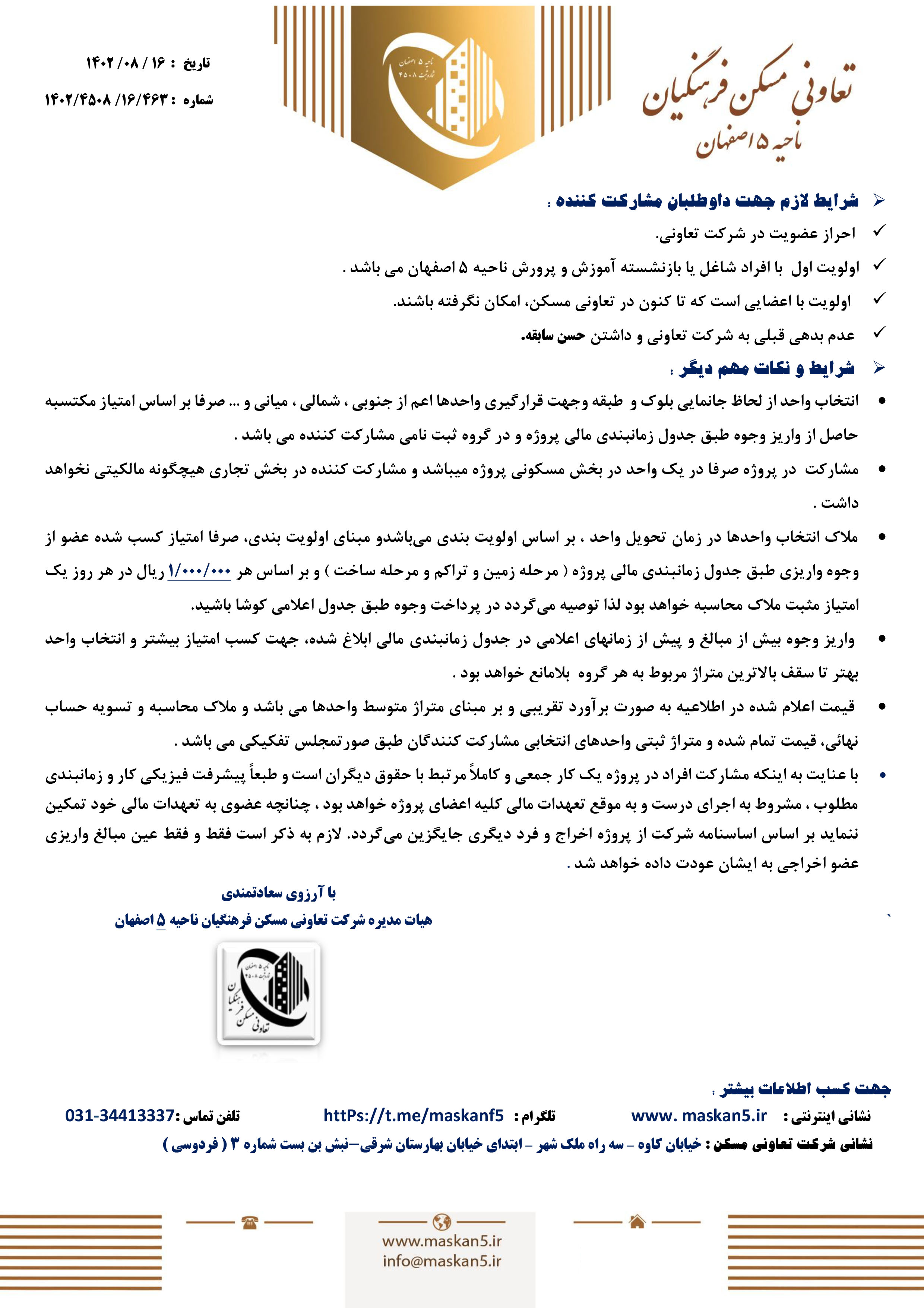 © 2019 - کلیه حقوق متعلق به شرکت تعاونی مسکن فرهنگیان ناحیه 5 اصفهان است.